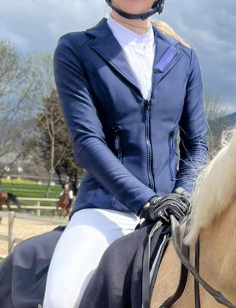 Vend veste deserata bleu marine avec fermeture strass. Écriture dans le dos en strass aussi.