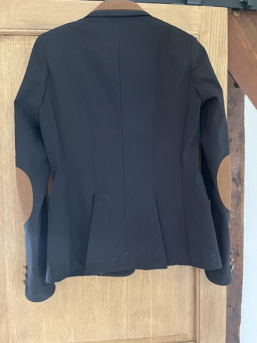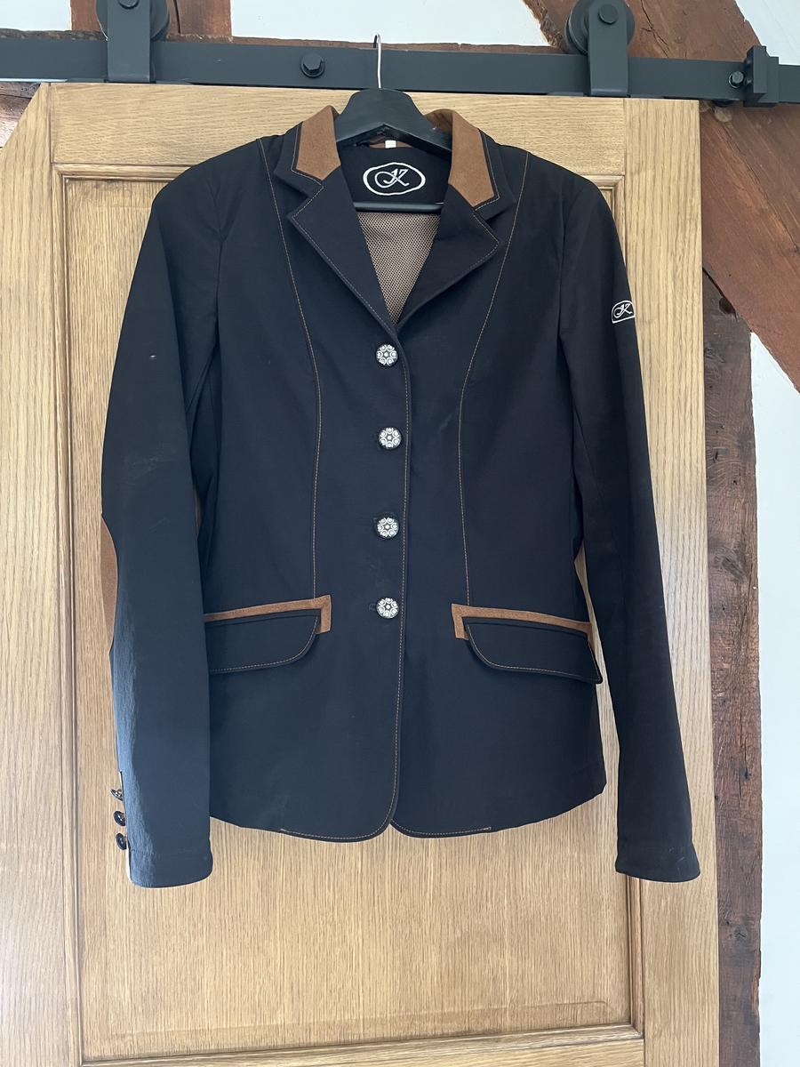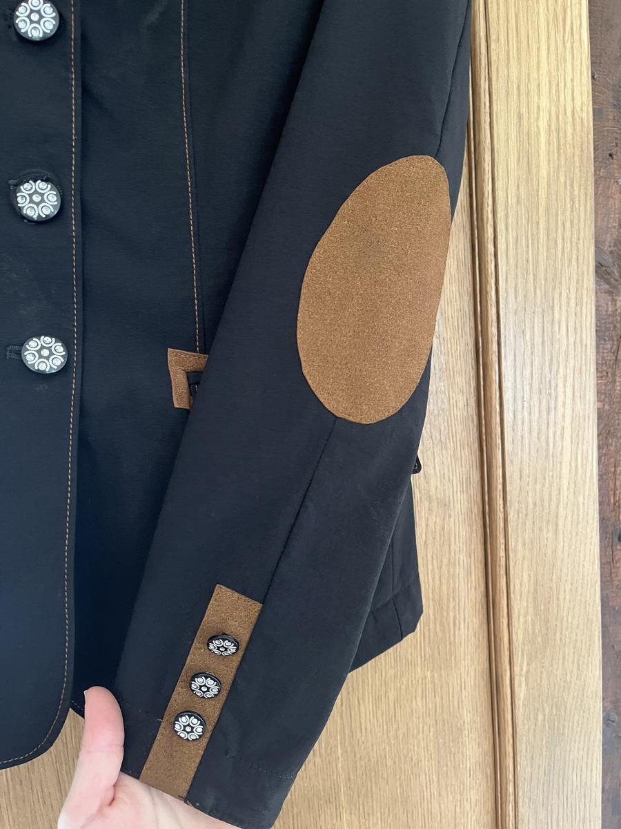 Veste de concours Komutekir, porter 10 fois, noir, détail marron. Veste élégante, coupe cintré.
