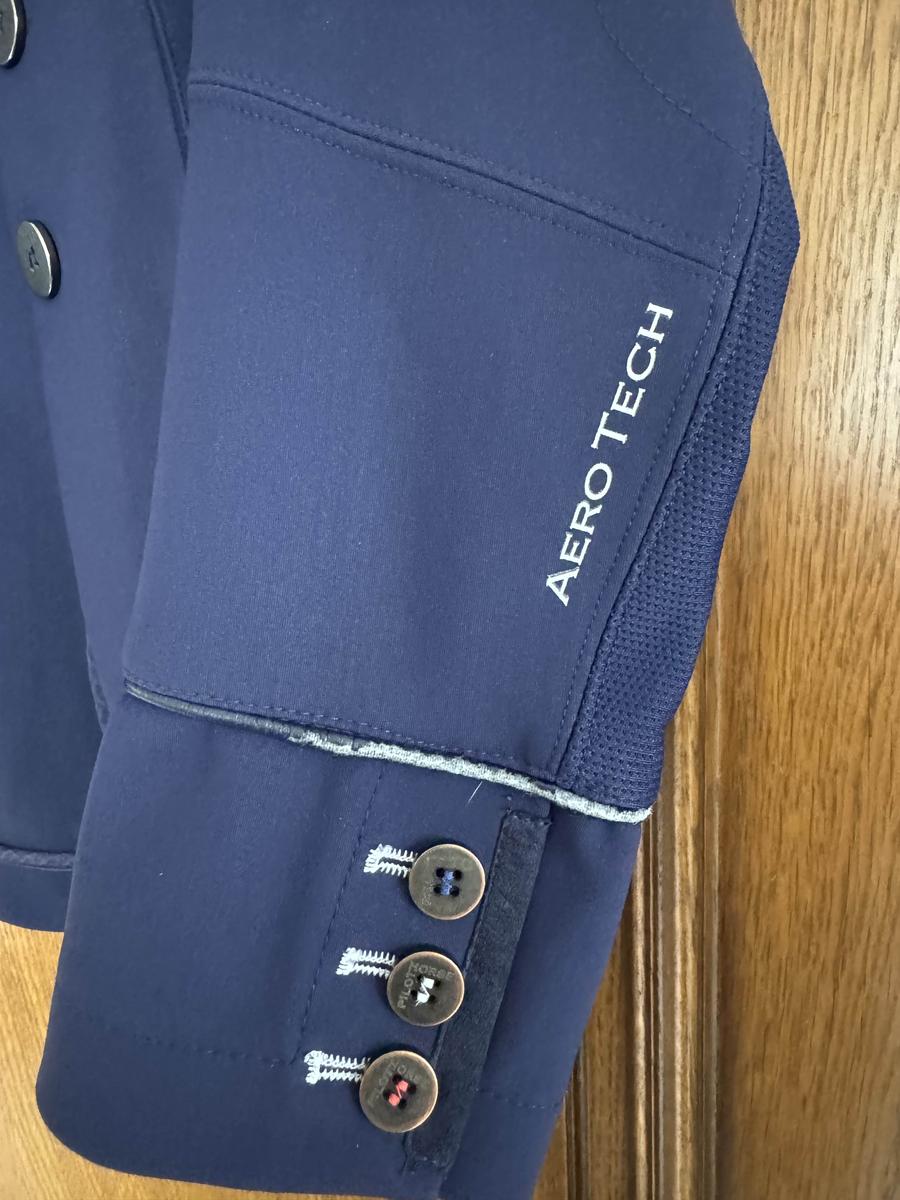 Aero tech, taille 36, quelques défauts ( voir photos) : manque un bouton, usure au niveau de la manche gauche et également logo craquelé sur l’épaule.