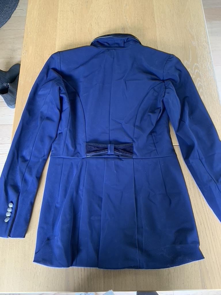 Bleu, col et noeud velours bleu, liseré noir, boutons argentés