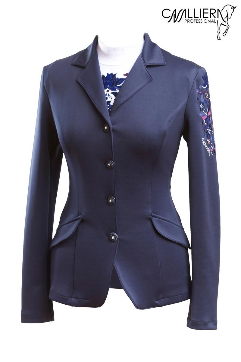 Une veste de compétition pour femmes et enfants, taillée de manière classique, avec des détails spéciaux tels qu’une broderie florale sur la manche gauche. C’est une pièce véritablement unique et élégante pour la cavalière. Grâce à l’élasticité 4 directions et aux propriétés respirantes du tissu, cette veste de concours offre un confort exceptionnel tout en conservant son raffinement.