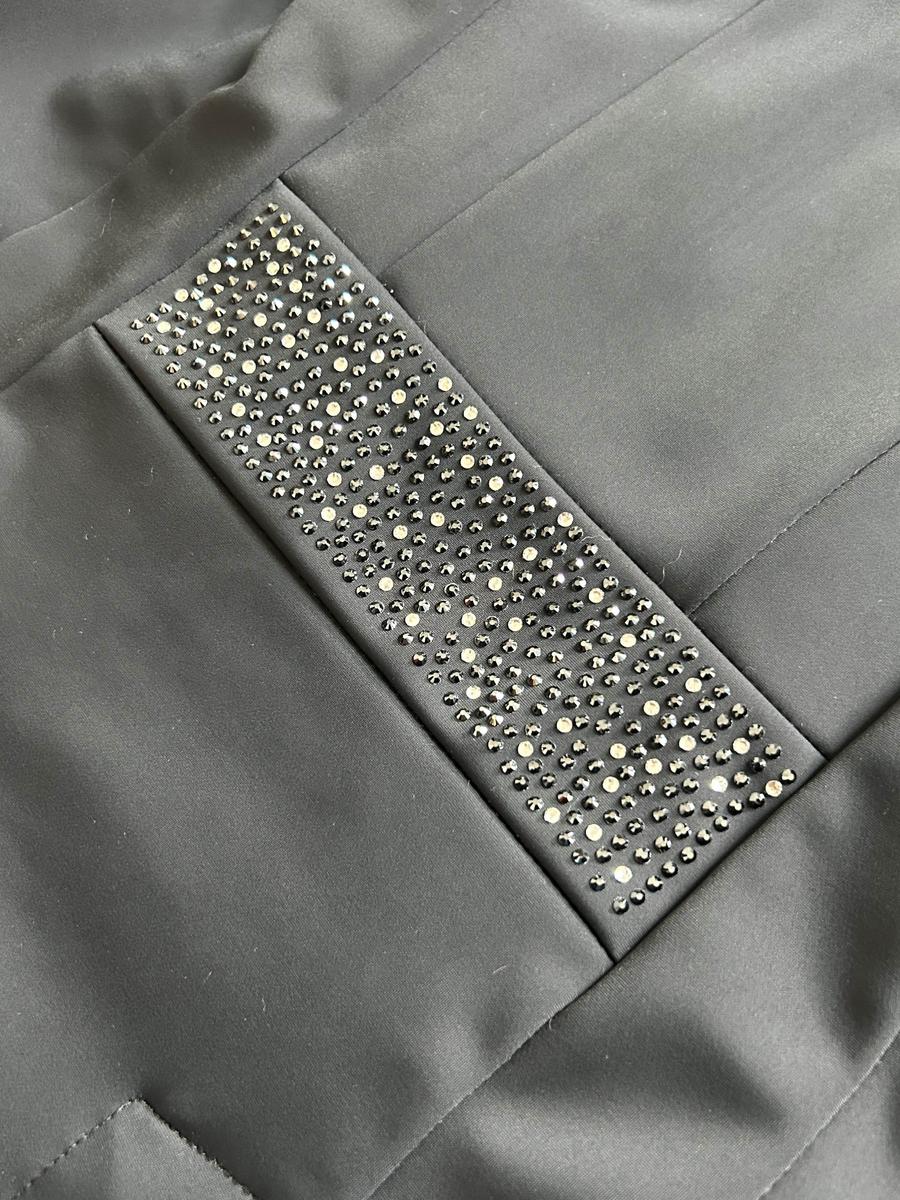 Système de zip pour la fermer, caché sous trois boutons pailletés.