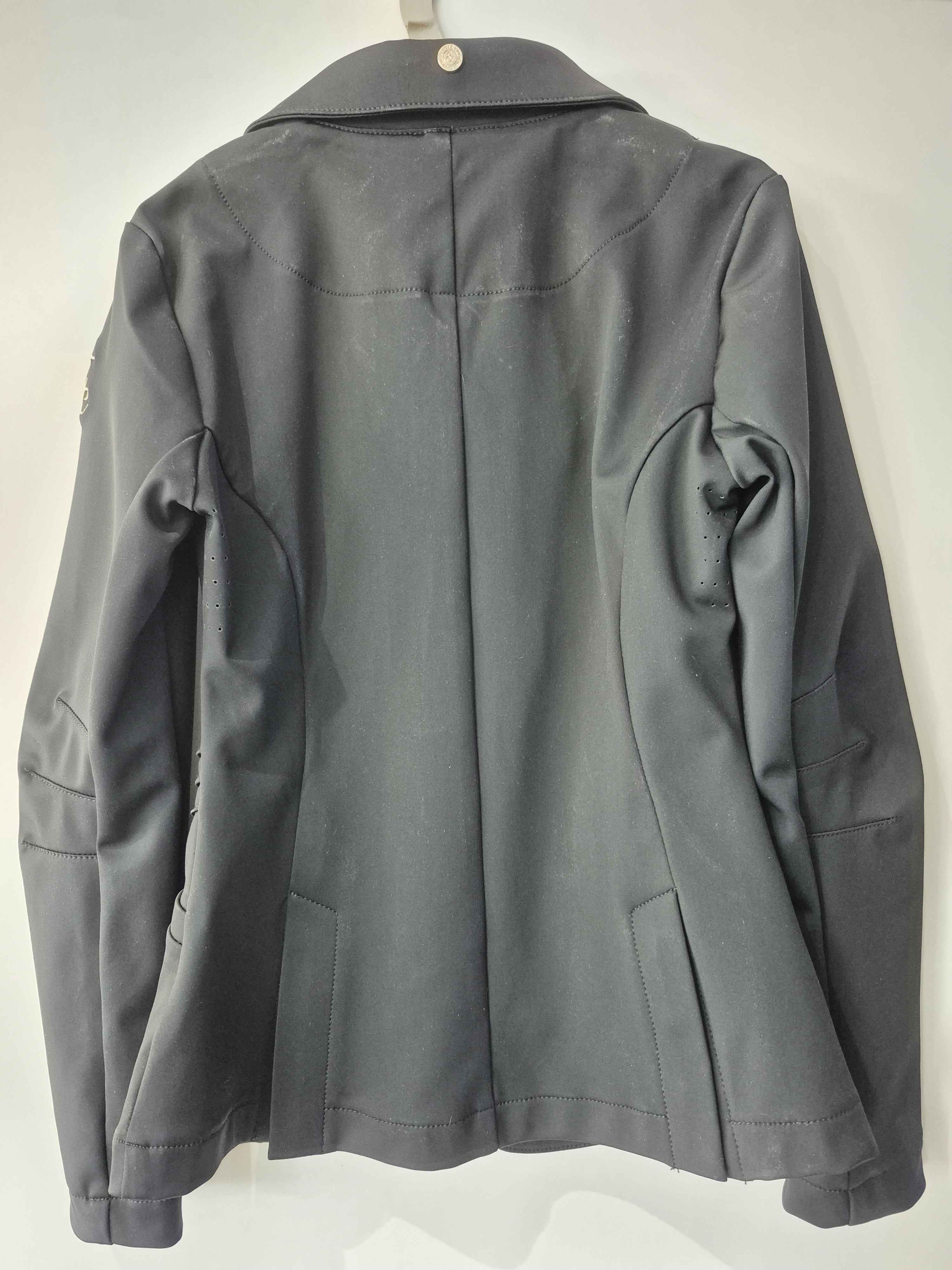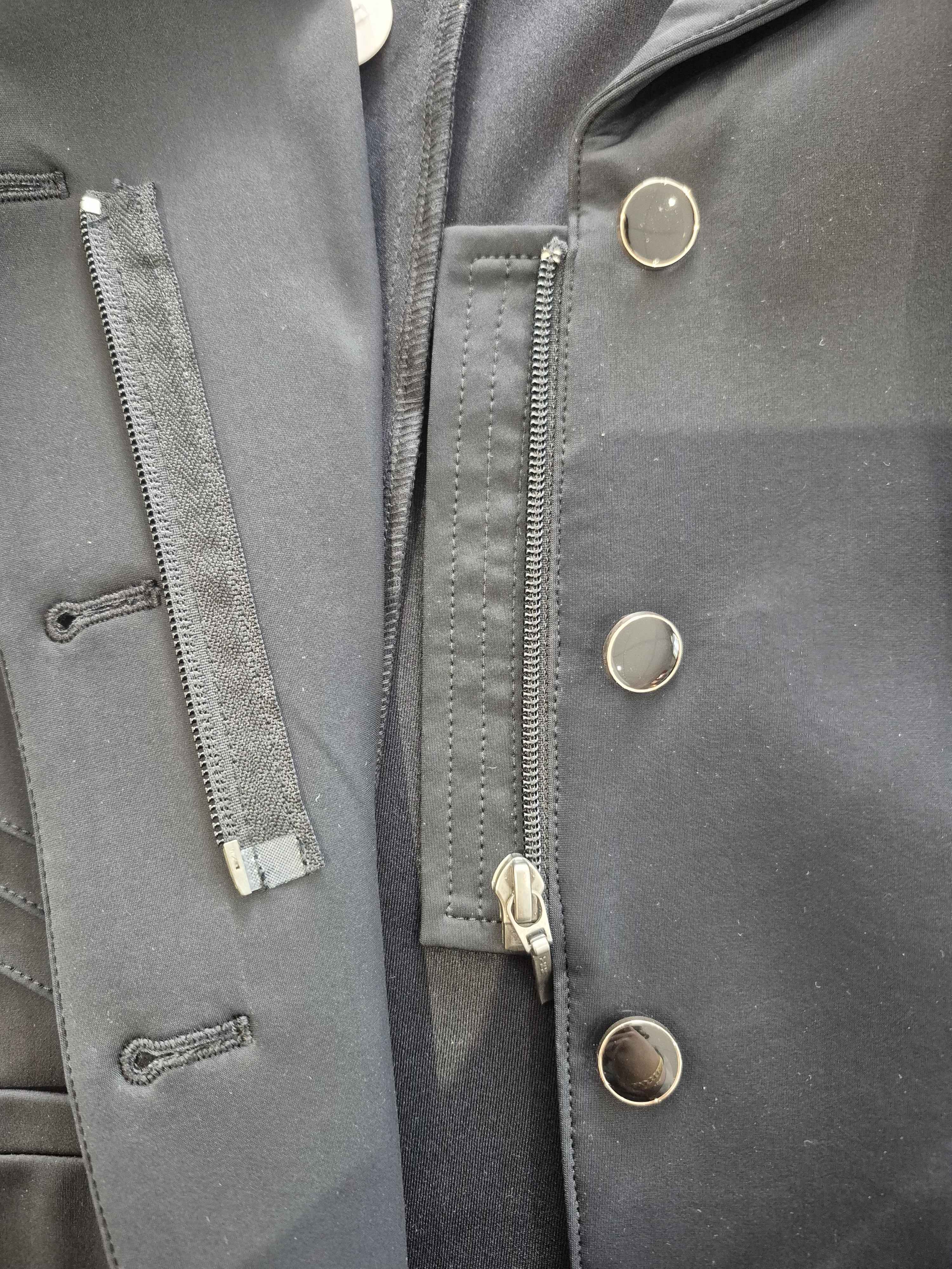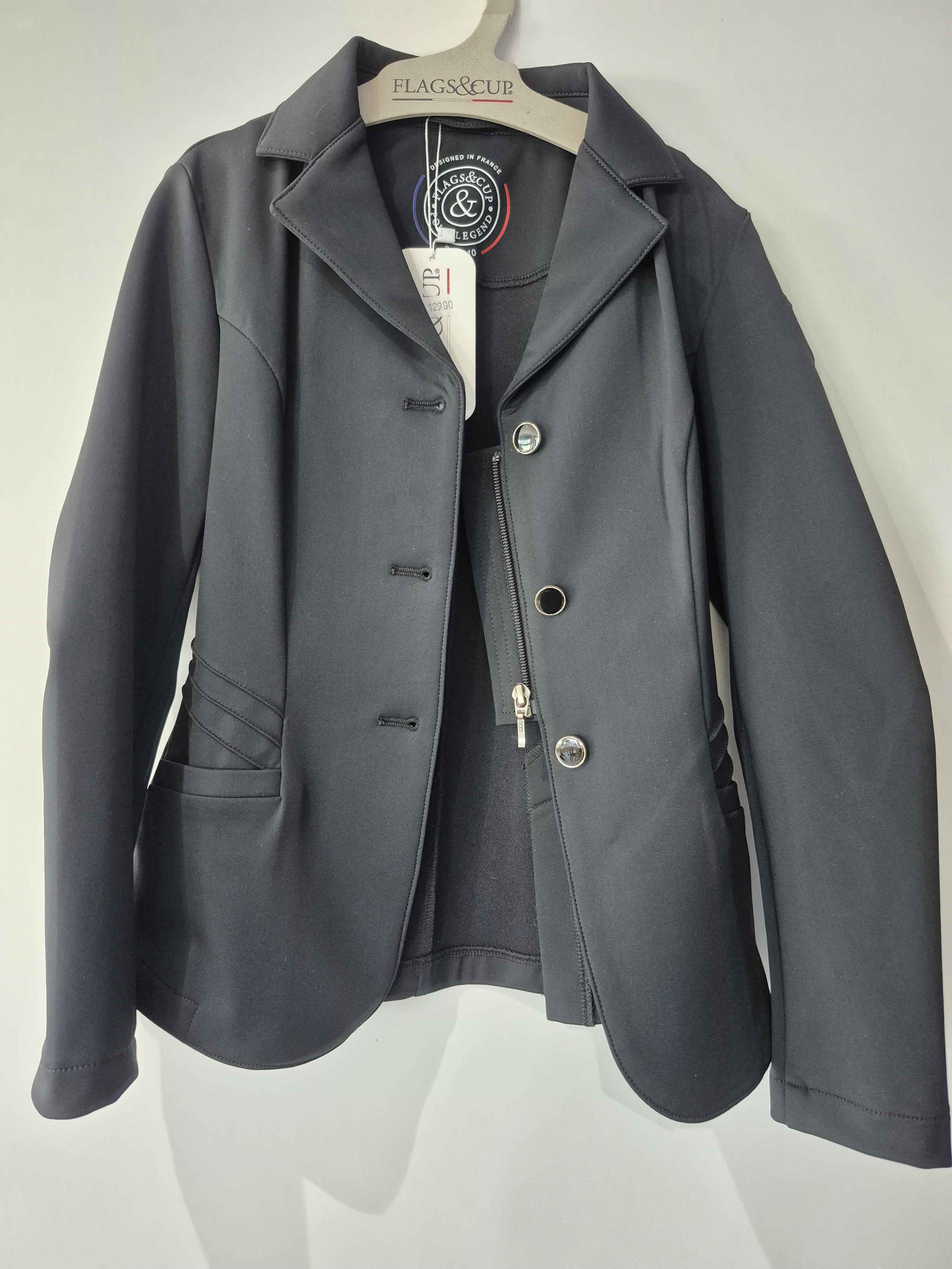 Confort et élégance pour vos concours ! Incroyablement respirante, légère et élégante, cette veste de concours VICTORIA Flags&Cup vous offre un style et un confort exceptionnels lors de vos compétitions. Tissu micro perforé sur les côtés de la veste. Son tissu 4-way stretch, haut de gamme, très extensible et respirant, permet une aisance sans égale et une finition intérieure passepoilée autorise une liberté de mouvement optimale, pour faciliter votre performance. 2 poches avant et broderie dorée F&C sur la manche gauche. Fentes cavalières arrières. Composition: 90% polyester - 10% élasthanne