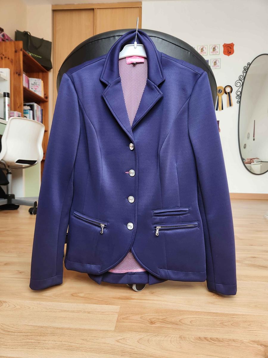 Je vends ma veste de concours equestrian CM en taille M, de couleur marine. Elle est légèrement abîmé à l'intérieur des coude (voir photo 4) mais ça ne se voit pas lorsqu'on monte. Vendu avec les boutons de rechange. Acheté 130€ et porté 4 fois.